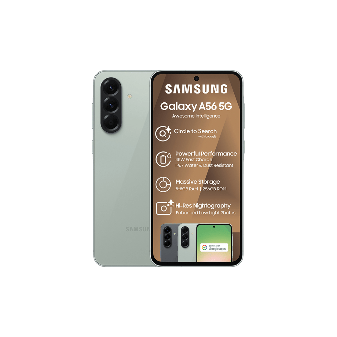 Whether you’re a content creator, gamer, or multitasker, the Samsung Galaxy A56 5G delivers stunning visuals, smooth navigation, and built-in intelligence — making it the perfect device for work and play.